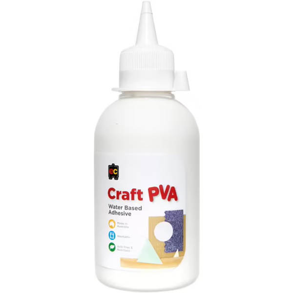 This Australian made craft PVA is non-toxic, washable, acid-free and PH neutral, unlike many other PVAs on the market | This superior quality PVA adheres well to a wide range of products including paper, cardboard, wool, wood and textiles | Suitable for all craft activities as it dries clear, smooth and quickly | Setting time of 20-40 minutes and reaches maximum strength after 12 hours | Made in Australia | Acid Free and non-toxic | Dries clear | pH neutral | Washable