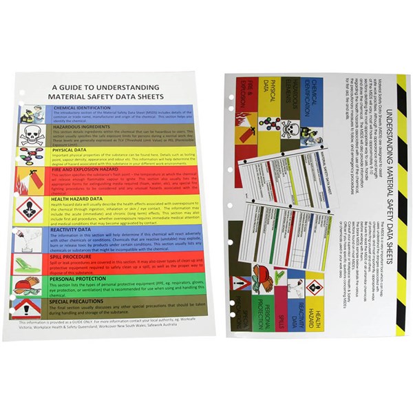 Replacement SDS Information Sheet | Replacement Safety Data Sheet (SDS) User Guide Sheet for a your SDS binder | An ideal employee handout to help meet SDS training requirements | Detailed instructions relating to reading and understanding Safety Data Sheet documentation | A4 Size card, Printed in full colour on 2 sides | Cello-glazed to improve durability | Standard 7 hole punching to suit any ring configuration