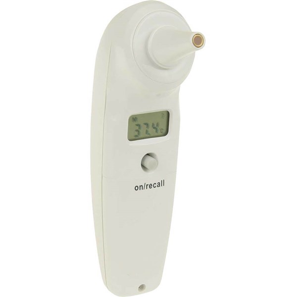 The Trafalgar tympanic Infra-red ear thermometer is a device capable of achieving a temperature measurement, via an infrared reading, when placed in the auditory canal of a subject | Safe means of measuring human body temperature through the ear | Simple, one button operation | Accurate reading | Ready beep indicates correct positioning | Measures temperature in just seconds | Additional ear cover refill pack available (7091640) | Requires new disposable probe cover for each use | Auto shut-off in one minute after non use | Beeper function | Complete with 20 x disposable covers and a carry bag