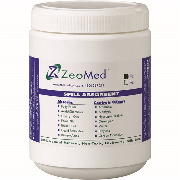 ZeoMed clean-up powder | ZeoMed is the ideal solution for locations with spill risks ranging from biohazard and chemical spills to general slip and fall hazards, such as cooking oils or detergents | Suitable for laboratories, supermarkets, shopping centres and restaurants | Quick acting, natural absorbent of toxic and noxious odours | 100% natural mineral and ecologically safe | Non-toxic | Absorbs excess moisture helping coagulate spills | No shelf life - powder does not expire