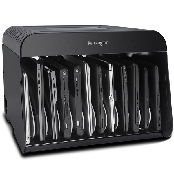 Universal compatibility stores and charges up to 12 AC-Powered devices (up to 14 inch each), including chromebook, Surface/Surface pro, Macbook Air, iPad, Galaxy tab, laptops and 2-In-1s | Built-In cable management reduces clutter and minimizes tangles | Security door with kensington security slot easily accommodates a standard padlock for simple device | Sturdy metal frame offers durable protection to withstand the demands of every day use | Industrial-Grade surge protector provides 12 wide-Spaced outlets for protection against voltage spike | Repositionable slot dividers easily adjust or remove to accommodate thicker devices or devices with | Ample power adapter storage keeps valuable ac power adapters neatly tucked away | CONNECTIONS | GENERAL