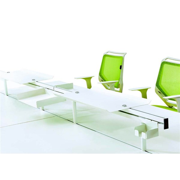 Fleet tool rail | Each tool rail comes with a fixed line mobile phone tray, paper trays and utility cup | Double sided for use on 1 or both desktops on a 2 or 4 person fleet desk