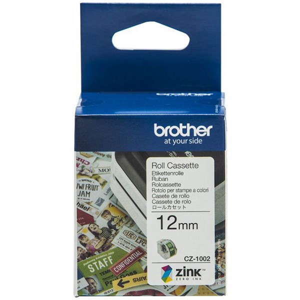 This Brother CZ-1002 label roll allows you to print full colour labels for a wide range of labelling needs | Can be used in the office or home for identification of files, boxes, shelves, personal possessions or other important items | Add a personalised touch to your craft projects | From photos, to images to symbols, give your creations that added personal touch with full colour labels | Uses ZINK Zero-Ink Printing Technology to produce full colour prints without using ink | Compatible for use with the Brother VC-500W Label Printer | Size: 12mm x 5m continuous roll