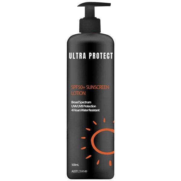Ultra protect is a broad spectrum SPF 50+ sunscreen containing vitamin E and Aloe Vera | Up to 4 hours water-resistant, protects against UVA UVB rays and gives very high protection for sun-sensitive skin | Complies to AS/NZS 2604:2012 UVA and UVB Broad Spectrum protection | SPF50+ 4 Hour Water Resistant | Australian made and owned | Fast absorbing | Dry Touch | Every day use | Rubs in clear | Sand/dirt won't stick to the skin | Moisturising | Low allergy | Fragrance-free and nanoparticle free | TGA Listed (AUSTL 223881/223882)