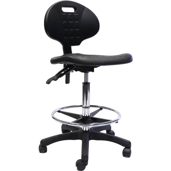 The Rapidline Laboratory drafting chair comes with a moulded polyurethane seat pan and back rest, contoured waterfall seat and infinite tilt lock for complete sitting adjustment | Moulded Polyurethane Seat Pan and Back Rest | Contoured Waterfall Seat | Back Height Adjustment | Seat Tilt With Infinite Lock | Back Tilt With Infinite Lock | Gas Height Adjustment | Chrome Plated Height Adjustable Drafting Ring | 5 Star Black Nylon Base With Castors | Due to freight costs, some orders may incur a delivery charge and this will vary depending on the order, particularly in regional areas. Delivery costs can be confirmed at the time of order. Some items require assembly, if you need help this can be advised at the time of order. A service fee for assembly/installation may also apply. Delivery lead times may apply to some items, this can be confirmed at the time of order