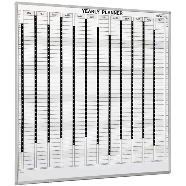 Visionchart perpetual magnetic yearly planner whiteboard.. Use year after year! | Laminated graphic surface with permanent lines on a commercial quality magnetic whiteboard with an aluminium frame with rounded corners | Each planner is supplied with Magnetic Date Strips, Public Holiday Markers and erasable whiteboard markers | Mounting wall screws and masonry plugs supplied for easy installation | Supplied with: 12 x magnetic 1-31 date strips, 10 x Public holiday magnetic strips, 2 x fine point erasable markers, Magic Wipe microfiber cleaning cloth | Organisation at a glance | Laminated surface | Concealed wall fixing | 1 year warranty | Due to freight costs, some orders may incur a delivery charge and this will vary depending on the order, particularly in regional areas. Delivery costs can be confirmed at the time of order. Some items require assembly, if you need help this can be advised at the time of order. A service fee for assembly/installation may also apply. Delivery lead times may apply to some items, this can be confirmed at the time of order