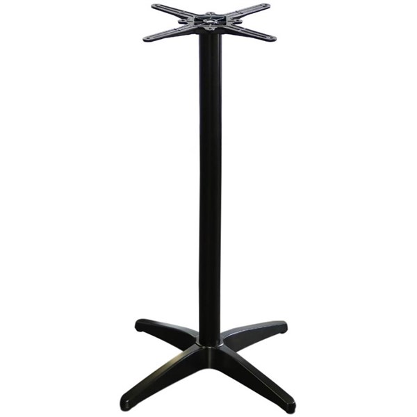 Quality black powdercoated aluminium bar height table base suitable for indoor and outdoor use in all commercial applications | Top Plate: Cast aluminium top plate with 8 fastening points | Recommended table top max weight and size: 10kg, 700 x 700mm, Will suit square or round Duratop | 4 adjustable levelling feet