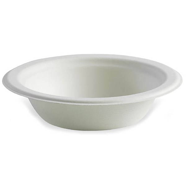 Biopak tree-free bowls are made from rapidly renewable sugarcane pulp, a by-product of the sugar refining industry | BioPak takeaway bowls are tree-free, made from reclaimed and rapidly renewable sugarcane pulp, a by-product of the sugar refining industry that remains after the juice has been extracted and is a resource that would otherwise be burned | Sturdy and versatile, these sugarcane bowls can handle a wide variety of hot and cold foods, including soups and curries | They are grease and water resistant, with matching lid - perfect for food deliveries | They are an eco-friendly replacement to plastic for soup bowls and salad bowls | Sugarcane products are microwave-safe and oven-proof up to 220 degreeC for 20 mins and refrigerator and freezer safe (matching PET lids are not microwave or oven-safe) | Matching lids are available in PET, PP or PLA (made from Ingeo - a bioplastic made from plants not oil, that is certified industrially compostable to Australian AS4736 and European EN13432 standards.) | BioPak BioCane range has an indefinite shelf-life if kept cool and dry | Sugarcane products are certified home compostable to Australian AS5810 and European NF T51-800 standards and commercially compostable to Australian AS4736 and European EN13432 standards | BioPak BioCane range is the only sugarcane packaging certified home compostable in Australia and New Zealand | 125 pieces per sleeve |This product is sold individually. For CTN quantities, please order in multiples of 8. | Pack of 125