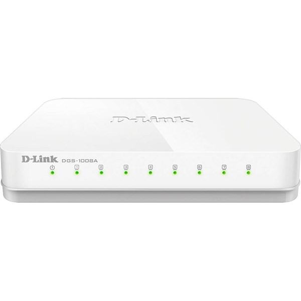 Light, compact design fits into any dEcor | 8 high-speed Gigabit ports | Compact design for convenient placement | Fanless design for silent operation | Innovative D-Link Green energy saving features | Environment Friendly- The 8-Port Gigabit Easy Desktop Switch was designed with the environment in mind, and is compliant with Energy Star Level V, as well as with the stringent CEC and MEPS regulations that require the use of energy efficient power adapters. The switch is also built to follow RoHS standards to minimize use of hazardous materials, and uses recyclable packaging that helps reduce waste, complying with the WEEE directive | Fast and Reliable Networking- The D-Link DGS-1008A 8-Port Gigabit Easy Desktop Switch creates a blazing fast network for your office, as its Gigabit Ethernet ports provide high-speed wired connections for up to eight PCs or other devices. The DGS-1008A also features QoS, which prioritizes network traffic so that time-sensitive data is delivered efficiently, even during bursts of high data traffic | Energy Efficiency Ethernet (EEE): Yes | Head-of-line (HOL) Blocking Prevention: Yes | Surge/Lightning Protection (AC Power Inet): 1kV | Surge/Lightning Protection (All Ethernet Ports): 1kV