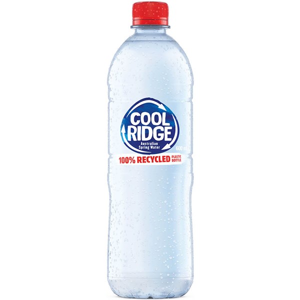 Cool Ridge spring water comes in a 600ml PET bottle that is sourced from quality Australian mineral springs | Perfect for getting your Recommended Daily Hydration Intake, this refreshing Aussie spring water is exactly what you need in the home, office or workplace | Bottle is made from 100% recycled PET | Carton of 24