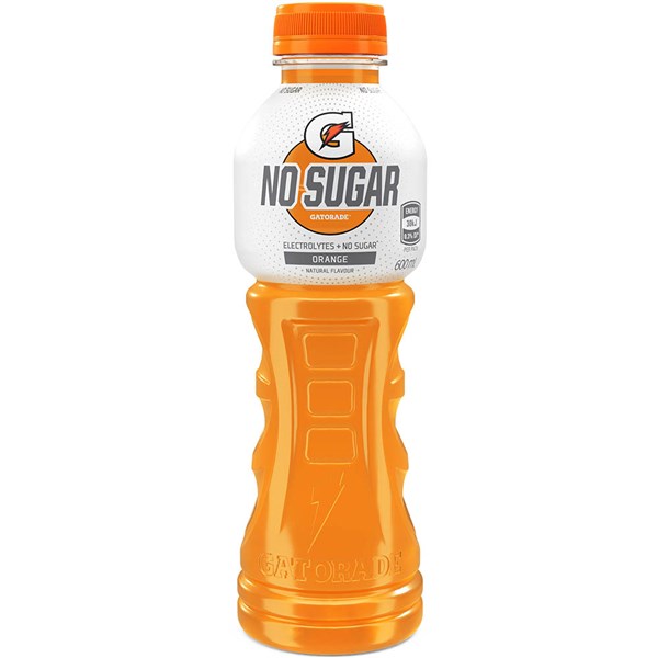 Gatorade No Sugar Orange comes in a 600ml PET Bottle | All the electrolytes made to keep you hustling | Gatorade No Sugar hydrates with the same electrolyte formula of Gatorade but has less than half the carbs and calories and No Sugar