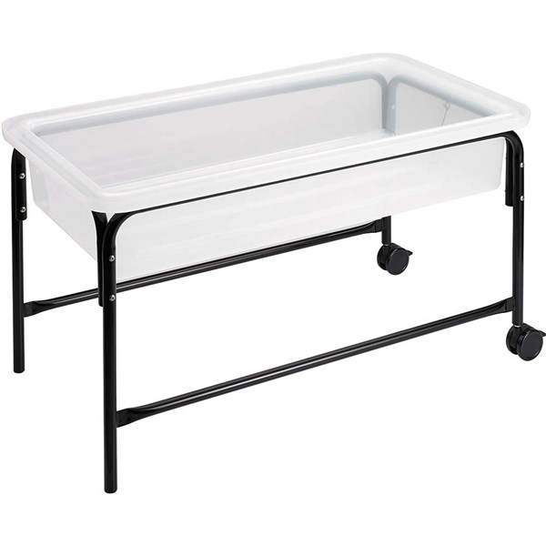 This strong and versatile plastic play tray features a water release plug in the bottom for easy discharge | Includes a strong tubular frame fitted with two lockable casters for easy movement | Safety in Design- Made for kids, this table comes with a steel stand and injection-molded tray, which holds its shape when filled with water or sand. The 2 lockable casters keep the wheels in place | Easily view activities- The translucent tray lets light pass through, which gives children a good view of sensory activities | Large size for small groups- Use it at home or in the classroom to socially engage and observe each other | High quality construction- Made from injection-molded plastic and powder-coated steel, this activity table will withstand years of use by young, eager explorers | Perfectly sized for kids- The table's dimensions ensure the best ergonomic position for inquisitive young minds to play and observe | Easy cleanup- The plug release at the bottom makes cleaning and removing water easy. There's no need to lift the tray or stand to empty it, and the drain plug is attached to the frame | Fascinate with stem- Use this table to demonstrate how buoyancy works and why objects sink or float. Try testing water displacement by using markers on the tray | Stand and Water Tray Set includes 1 x tray with 58cm high stand (without lid)