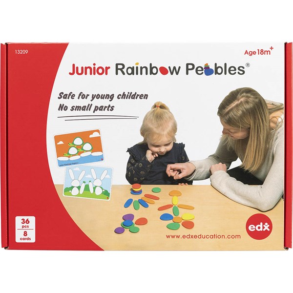 EDX Rainbow Pebbles are an essential educational toy for all children and special needs learners | Develop fine motor skills | Learn sorting, counting & sequencing | Links science, mathematics and art. It will stimulate children's imagination and creative thinking skills | Develop problem solving and creative design skills | Perfect for open-ended play. Safe for young children learning sorting, counting, classifying and colors | Set includes 36 pebbles in 3 sizes and 6 colours | Comes with 8 double sided A4 activity cards | For age 3 and above | WARNING | Chocking Hazard. Small Parts. Not for Children under 3 years