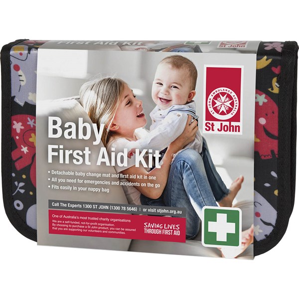 Complete with a detachable baby change mat, this essential kit is a must for parents and carers of babies and toddlers | It contains all the items you need to treat common first aid situations and is perfect for keeping in the nursery, nappy bag, or your car! | Practical, vibrant, and durable | Perfect for parents on the go | When you purchase this kit, you will also gain access to a St John Online First Aid course