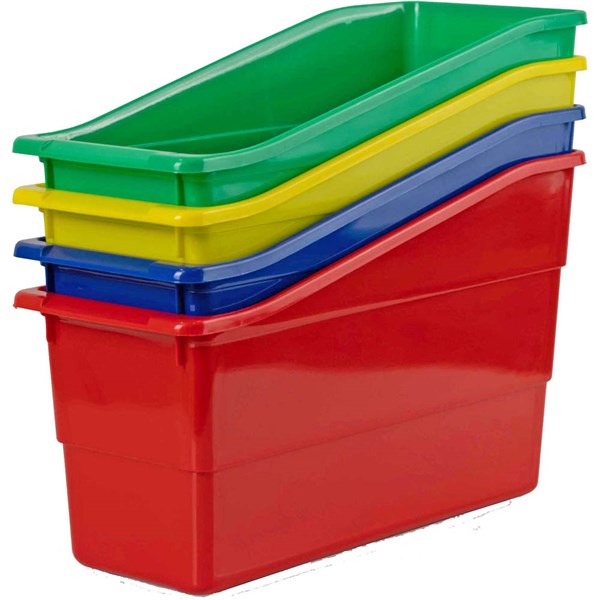 Classroom book caddies assorted pack 4 are a super fun way to add colour to your book storage | They are made from polypropylene and are durable and light weight | Great value way to add a little rainbow to your classroom | They come in a set of 4 assorted colours of blue, lime, pink and teal | Pack of 4