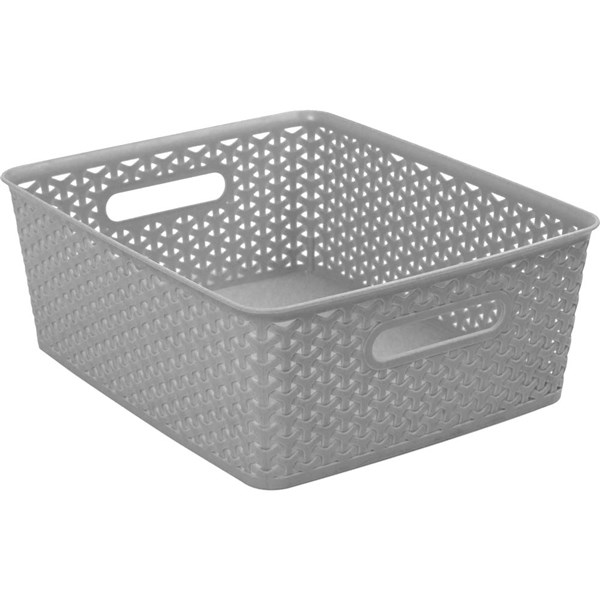Storage Basket Knotted Medium Grey, is a stylish way to store all manner of items in the classroom | Comes with two easy to tote handles that allow for ease of transportation | The knotted design is a nice addition to classroom decor | Can be used in cupboards or on shelves | Made from durable and strong polypropylene | The wipe clean and nest for easy storage when not in use