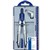 Quick-setting compass with centre wheel | Hinged lead and needle legs | Compass attachment included | Max. circle diameter with extension bar 450 mm | Length 156 mm | Case with hinged lid containing compass, universal adapter and lead box | This item is manufactured in Germany