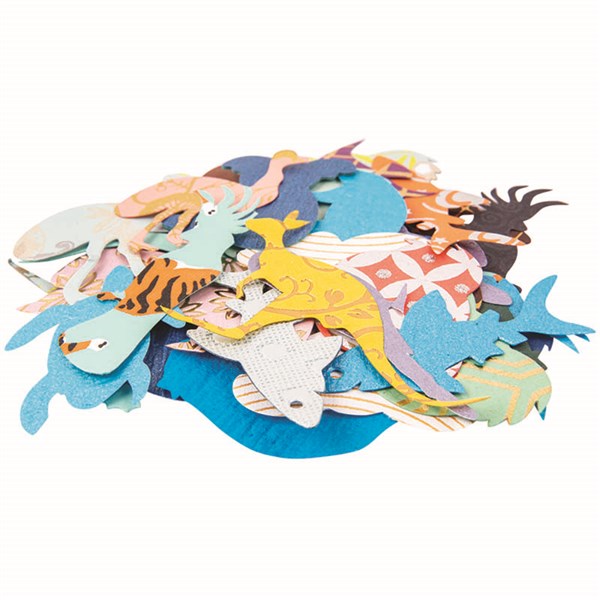 Zart Handmade Pattern Paper - Australian Animal Shapes 100g has been cut from exquisitely embossed, foiled and printed Indian handmade paper | This assortment in a range of festive colours and assorted patterns have been pre-cut into a generous variety of festive shapes | Use in collage, scrapbooking, card making, paper crafts, stationery, invitations and handmade gifts | Ideal for any art & craft activities | Consists of 14 shape designs in assorted shapes and sizes | Varying patterns and colours (red, gold, silver, green, yellow, orange and blues)