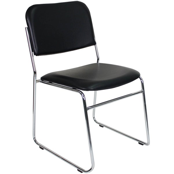 The Rapidline Evo Visitor Chair is the perfect choice for visitor and reception areas, with a comfortable upholstered black fabric or PU back rest and seat pan, paired with a chrome sled base and button feet | The EVO Chair has a Fully welded chrome sled base with button feet | Fully upholstered back rest & seat pan | Seat and backs available in black fabric or PU | Stackable up to 5 chairs high, stacks 20 high on chair trolley | Overall size of 480mm W x 500mm D x 840mm H | Seat size of 440mm W x 440mm D x 460mm H | Weight rating of 110kg | 3 year warranty | Due to freight costs, some orders may incur a delivery charge and this will vary depending on the order, particularly in regional areas. Delivery costs can be confirmed at the time of order. Some items require assembly, if you need help this can be advised at the time of order. A service fee for assembly/installation may also apply. Delivery lead times may apply to some items, this can be confirmed at the time of order