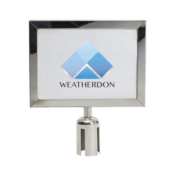 Polished stainless steel | Easy attach, simply slide over top of post | Complete with acrylic inserts to hold information in place | To attach simply slide over top of post | Complete with acrylic inserts to hold information in place
