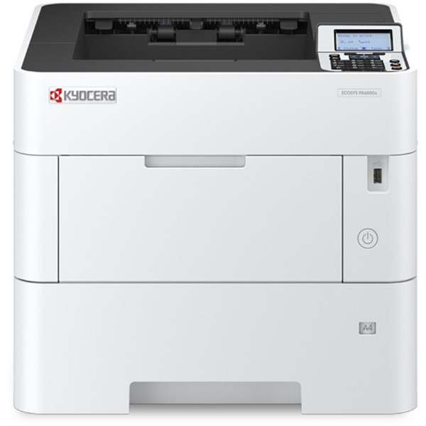 The ECOSYS PA6000x delivers an exceptional high-speed printing of up to 60 pages per minute and a first print time of 4.5 seconds, that guarantee efficient and reliable operation in a vibrant professional work environment | The low level of total cost of ownership and intelligent security features provide more than you expect | Data overwrite and encryption, Trusted Platform Module, Secure Boot and Run Time Integrity Check, S/MIME and TLS 1.3 | Up to 6 ways of paper input for max. 2,600 sheet capacity | Strenghen affinity with Microsoft Universal Print | Optional SSD hard disk with Data Security Kit | Environmentally friendly: long-life components, low energy consumption | Multi-Functional Products for day-to-day tasks- Kyocera provides the industrys most comprehensive line of award-winning low to high volume devices | A4 printer for all needs- High quality, high reliability and high efficiency are essential | 2 years On Site warranty | General | Paper Handling | Input capacity: Multi-purpose tray: 100 sheets 60 220 g/m2 A4, A5, A6, B5, Letter, Legal, Folio, Custom (70 x 140 to 216 x 356 mm), Banner paper up to 915 mm Standard universal paper cassette: 500 sheet 60 120 g/m2 ,A4, A5, A6, B5, Letter, Legal, Folio, Custom (105 x 148 to 216 x 356 mm) | Max. input capacity with options: 2,600 sheets | Comsumables | TK-3440- Micro fine black for 40,000 pages A4 | Due to freight costs, some orders may incur a delivery charge and this will vary depending on the order, particularly in regional areas. Delivery costs can be confirmed at the time of order Some items require assembly, if you need help this can be advised at the time of order A service fee for assembly/installation may also apply. Delivery lead times may apply to some items, this can be confirmed at the time of order