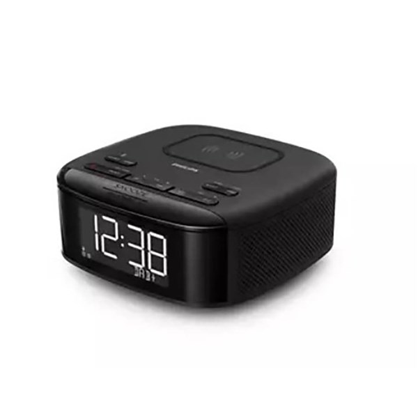 Wake to your favorite radio station or a buzzer, with your phone fully charged | This bluetooth clock radio features a wireless Qi charger and USB charging | You get crystal clear radio and you can stream audio from your mobile device | A large, clear digital time display glows at the front of this Bluetooth clock radio | Key controls are located on the top panel, which also hides a wireless Qi charging pad for your phone | For older style phones, there's a USB charging port | From non stop music to the latest news, this digital radio is your ticket to better listening | The DABplus tuner delivers crystal clear reception, and you can set up to 20 presets for your favorite stations