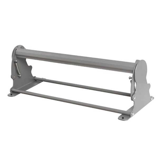 The Marbig paper cutter is a sturdy metal paper dispenser suitable for holding standard sized kraft paper roll | Spring loaded cutter bar to make dispensing to required length neat and easy | Includes slip resistant rubber feet for free standing on your packing bench | Includes set of screw fittings for securing to your bench if preferred