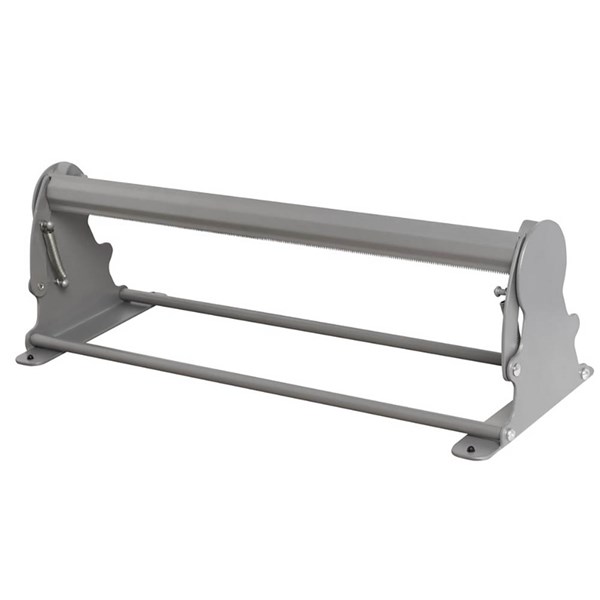The Marbig paper cutter is a sturdy metal paper dispenser suitable for holding standard sized kraft paper roll | Spring loaded cutter bar to make dispensing to required length neat and easy | Includes slip resistant rubber feet for free standing on your packing bench | Includes set of screw fittings for securing to your bench if preferred
