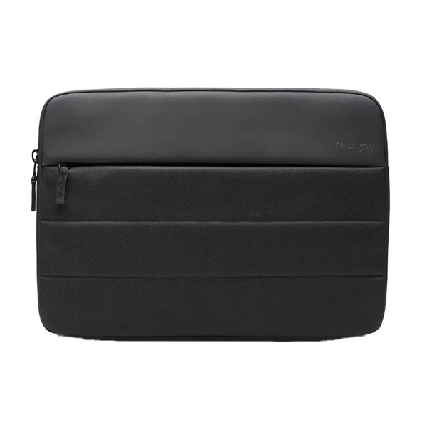 Protect your 16 inches laptop or tablet plus accessories in the black EQ Laptop Sleeve from Kensington | Featuring interior padding to keep your device protected from bumps and drops, it has premium zippers and stitching | A front zippered compartment holds small items and accessories | Padded interior protects your laptop or tablet | Exterior pocket stores and protects peripherals