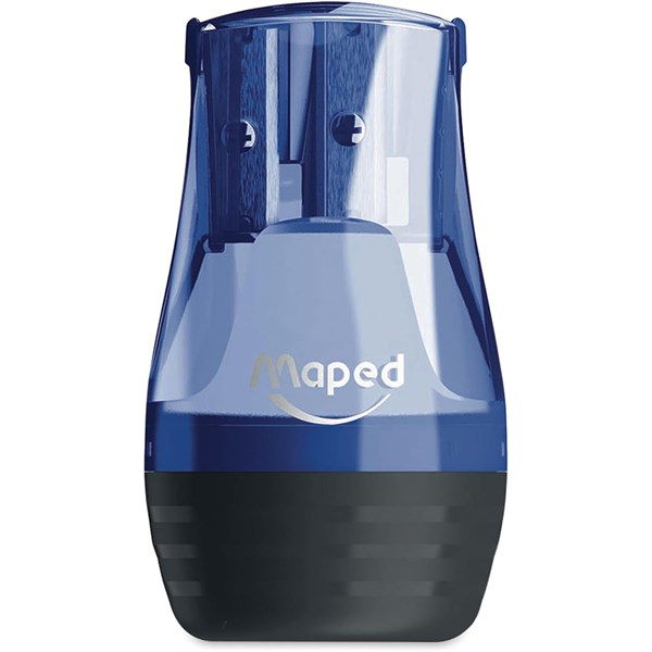 Maped's unique range of sharpeners combine quality and functionality with every design | Brighten up your desk and pencil case with the Maped range of pencil sharpeners | 2 hole sharpener | Ideal for standard and jumbo sized pencils | Efficient & precise sharpening |