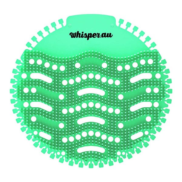 Whisper Urinal Screen in a Cucumber Melon to reduce washroom mess and odours | 10 pieces per pack | 10 pack per carton |This product is sold individually. For CTN quantities, please order in multiples of 10.
