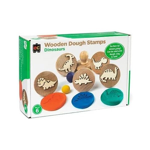 EDUCATIONAL COLOURS WOODEN DOUGH STAMPS DINOSAURS BOX 6