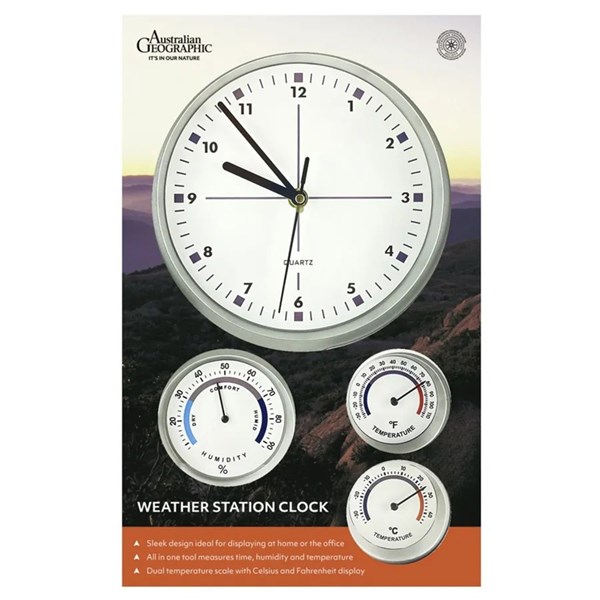 AUSTRALIAN GEOGRAPHIC CLOCK WEATHER WHITE